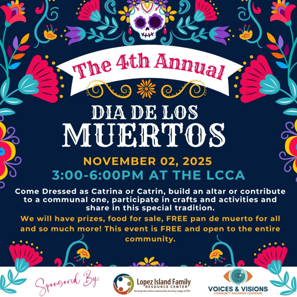 Join Us for A Community Celebration! Mark your calendars Lopez for the 4th Annual Day of the Dead celebration!  November 2nd from 3-6PM at the Lopez Center for Community and the Arts.  Come dressed as Catrina or Catrin, build an alter or contribute to a communal one, participate in crafts and activities, and share in this special