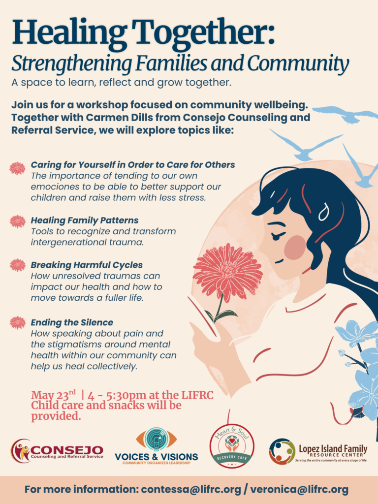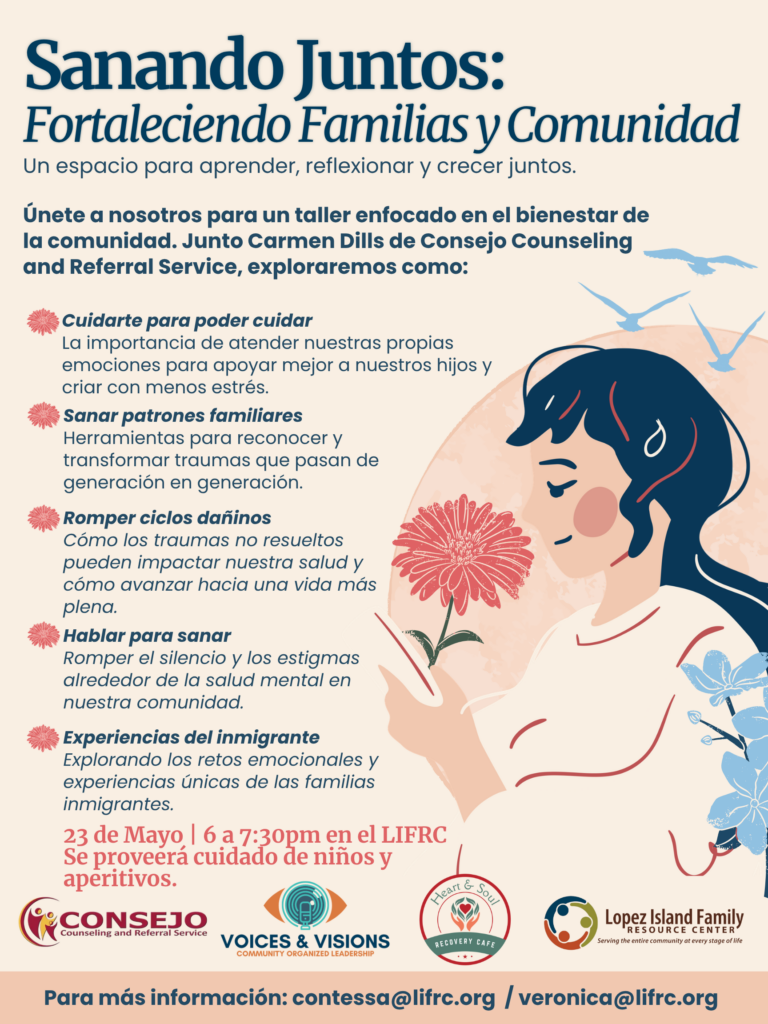 Join us for an afternoon of connection, reflection, and growth. In partnership with Consejo Counseling and Referral Service, this workshop creates space to care for ourselves, support our families, and begin healing together as a community.